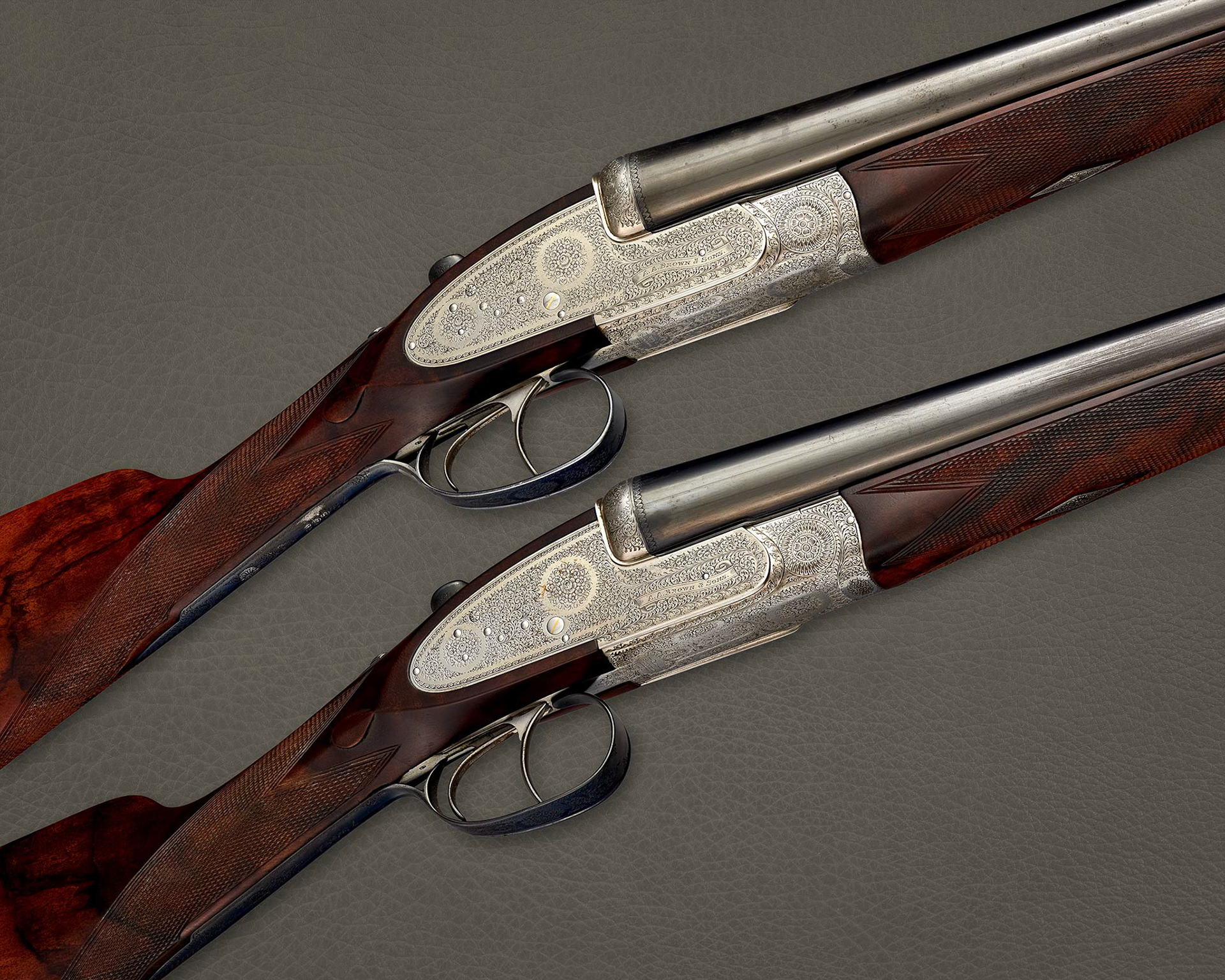 A pair of 12 bore A.A.Brown & Sons Supreme model sidelocks. Photographed for their sale through the maker and finding a home in the USA