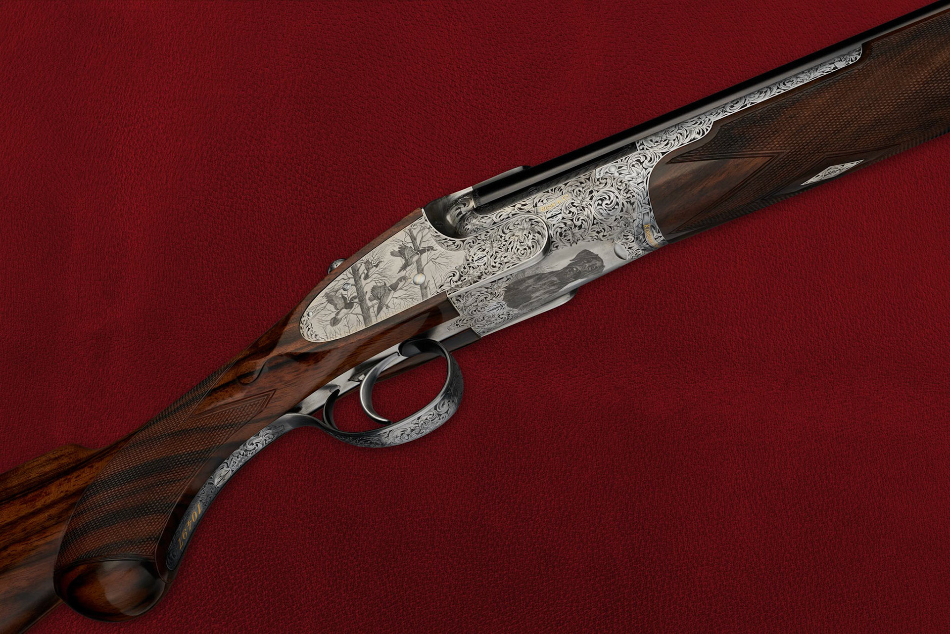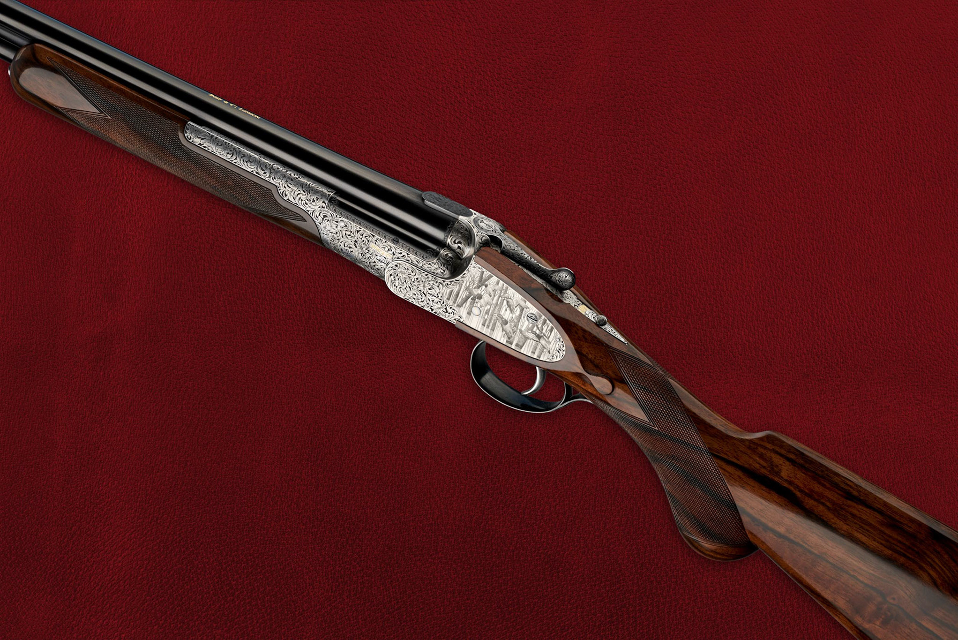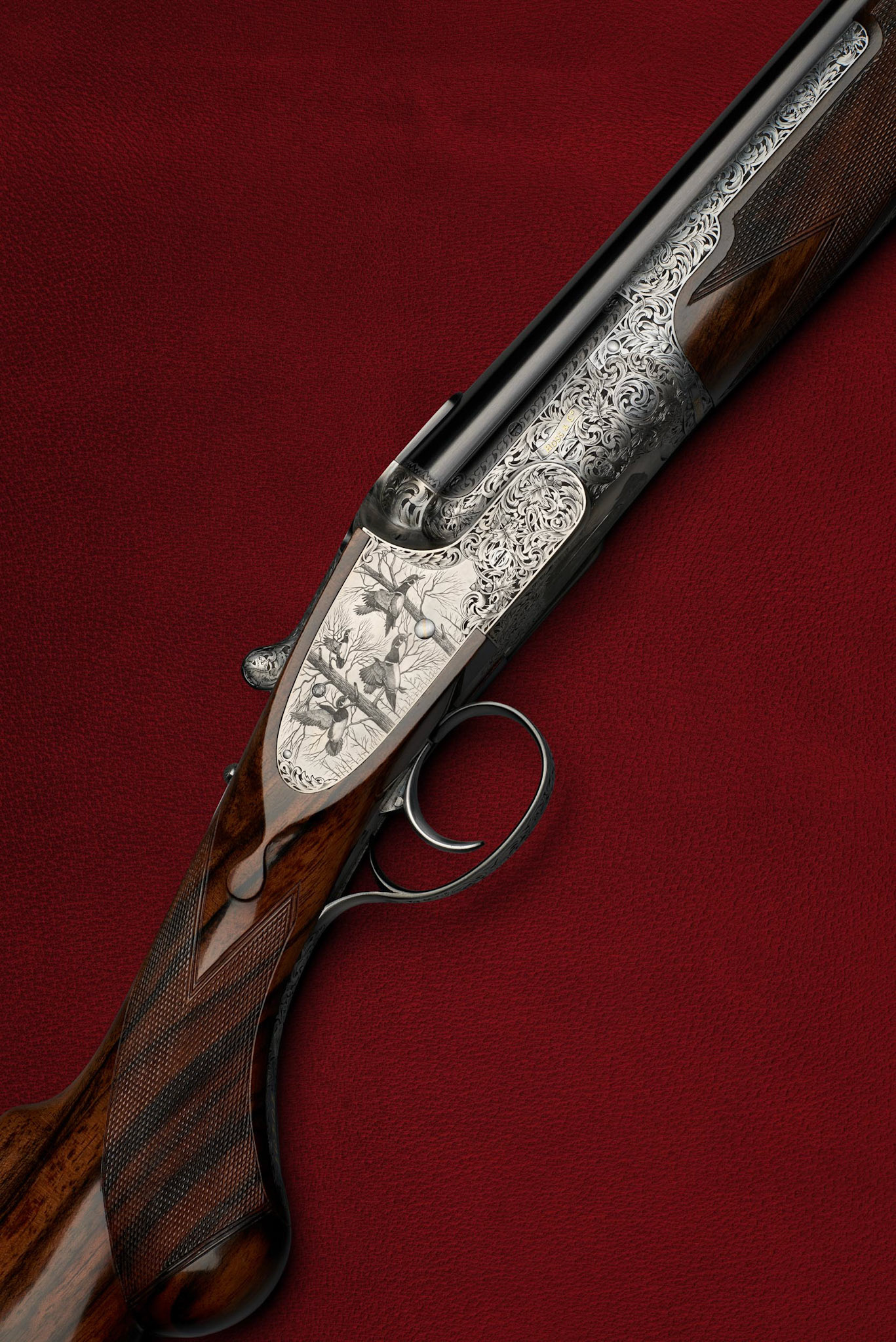 A Boss & Co 28 bore over & under with a coin finished square action and fine game scene engraving.