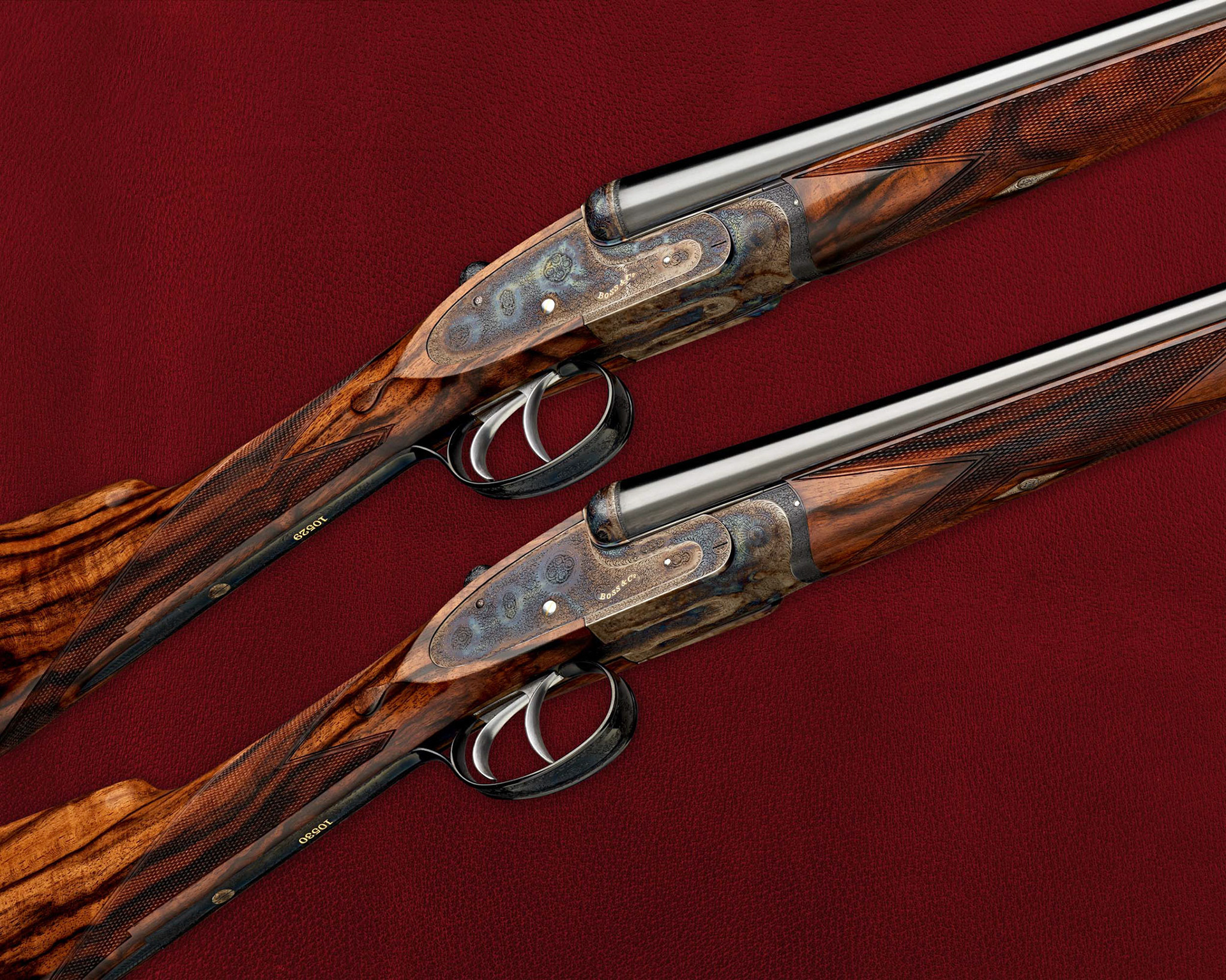 A colour hardened, rose and scroll engraved pair of Boss & Co .410 calibre side by sides