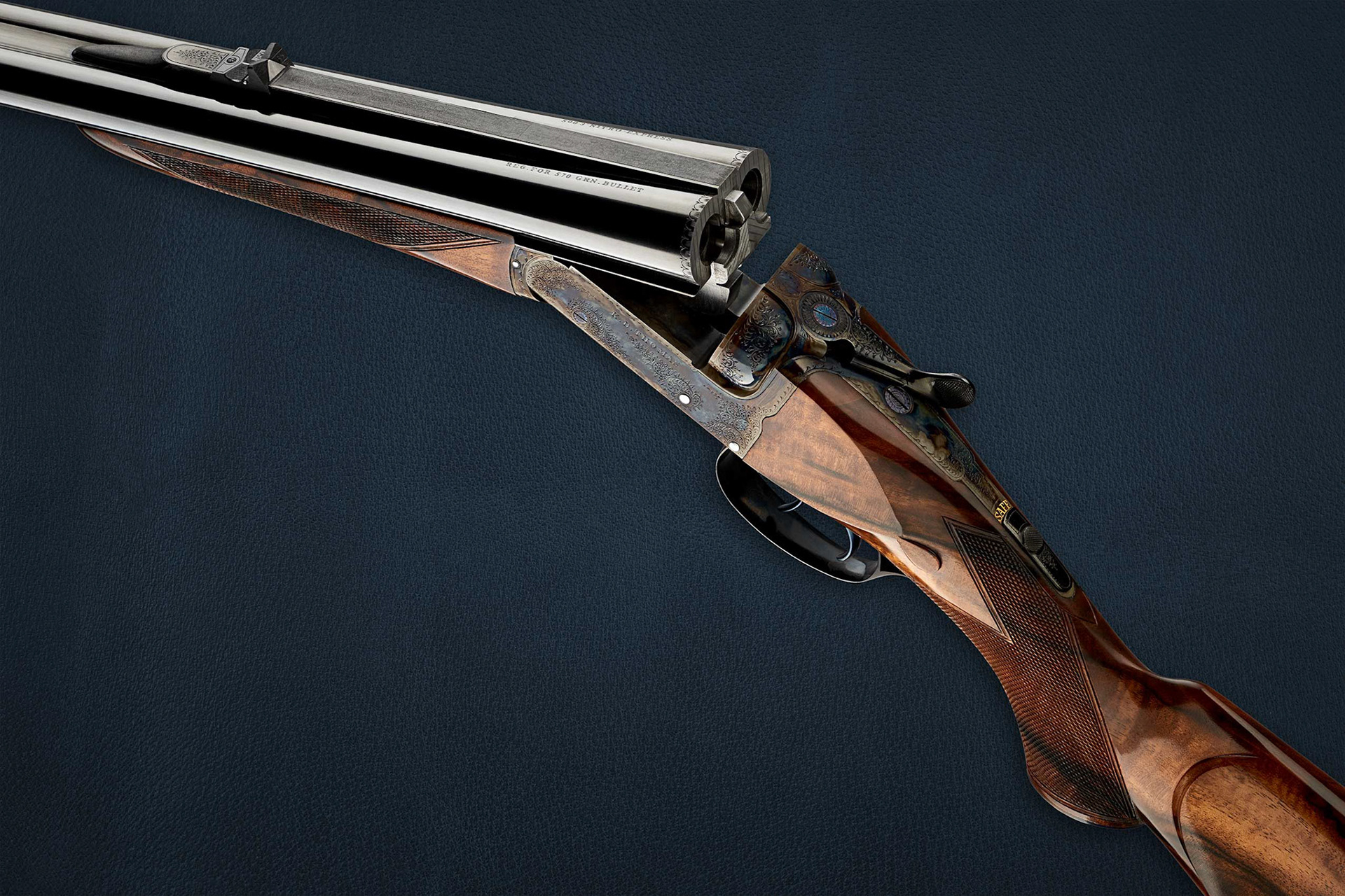 A .500 nitro express double rifle made by Keith Dennison Thomas. Photographed commissioned by the maker