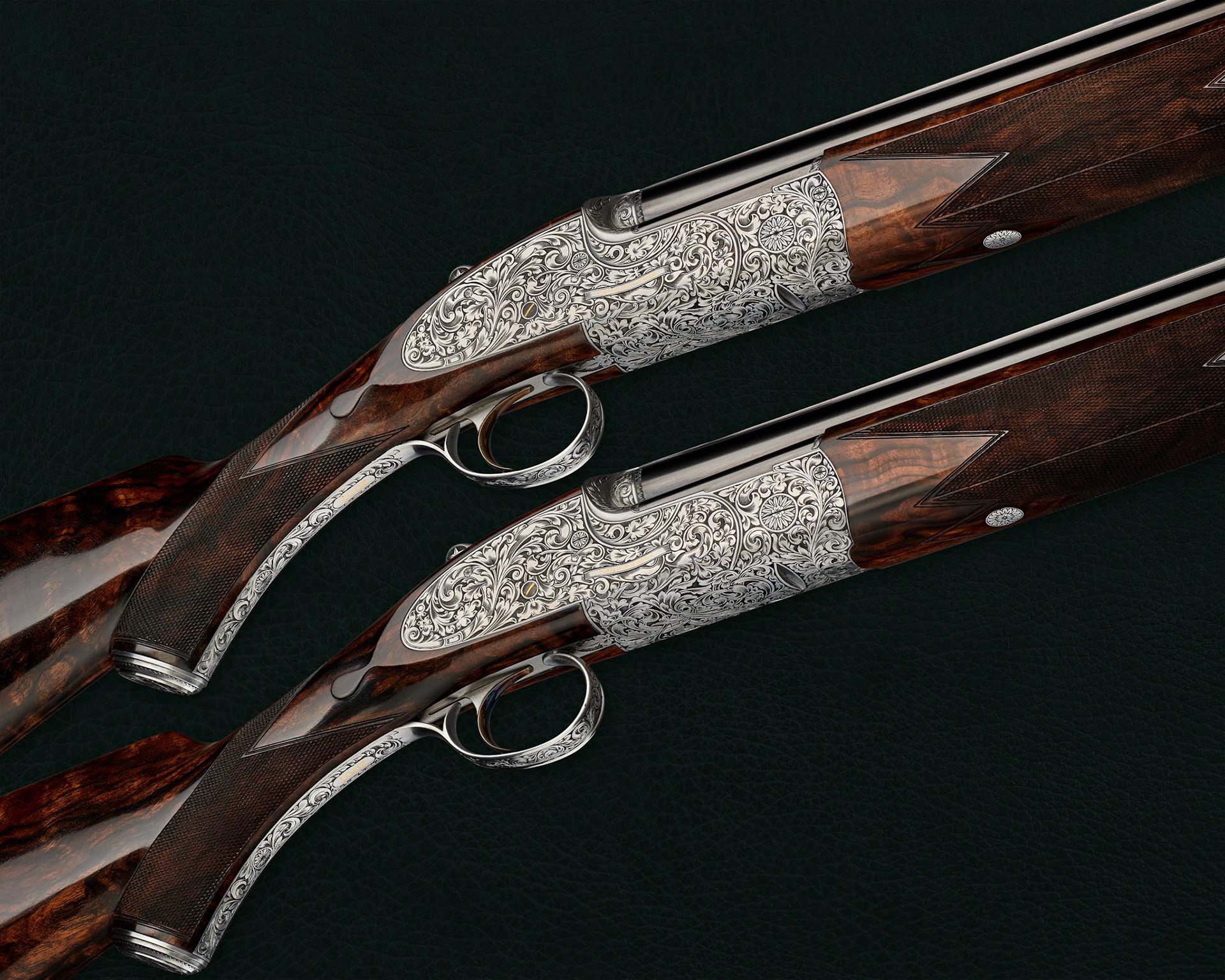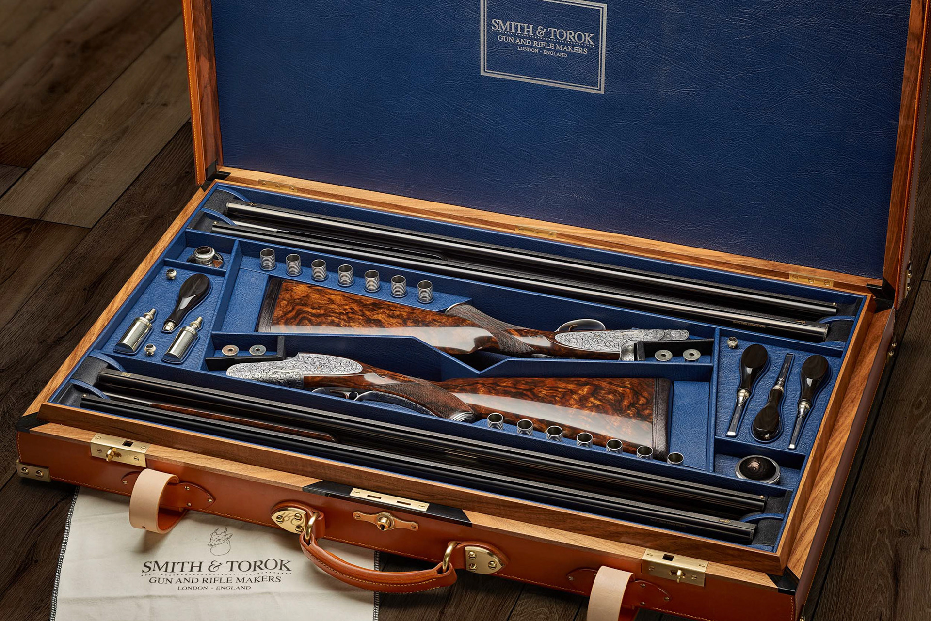 A pair of Smith & Torok over and under shotguns with two sets of barrels in 20 bore and 24 bore. Presented in an exhibition case with the finest quality case tools all made by the gunmaker.